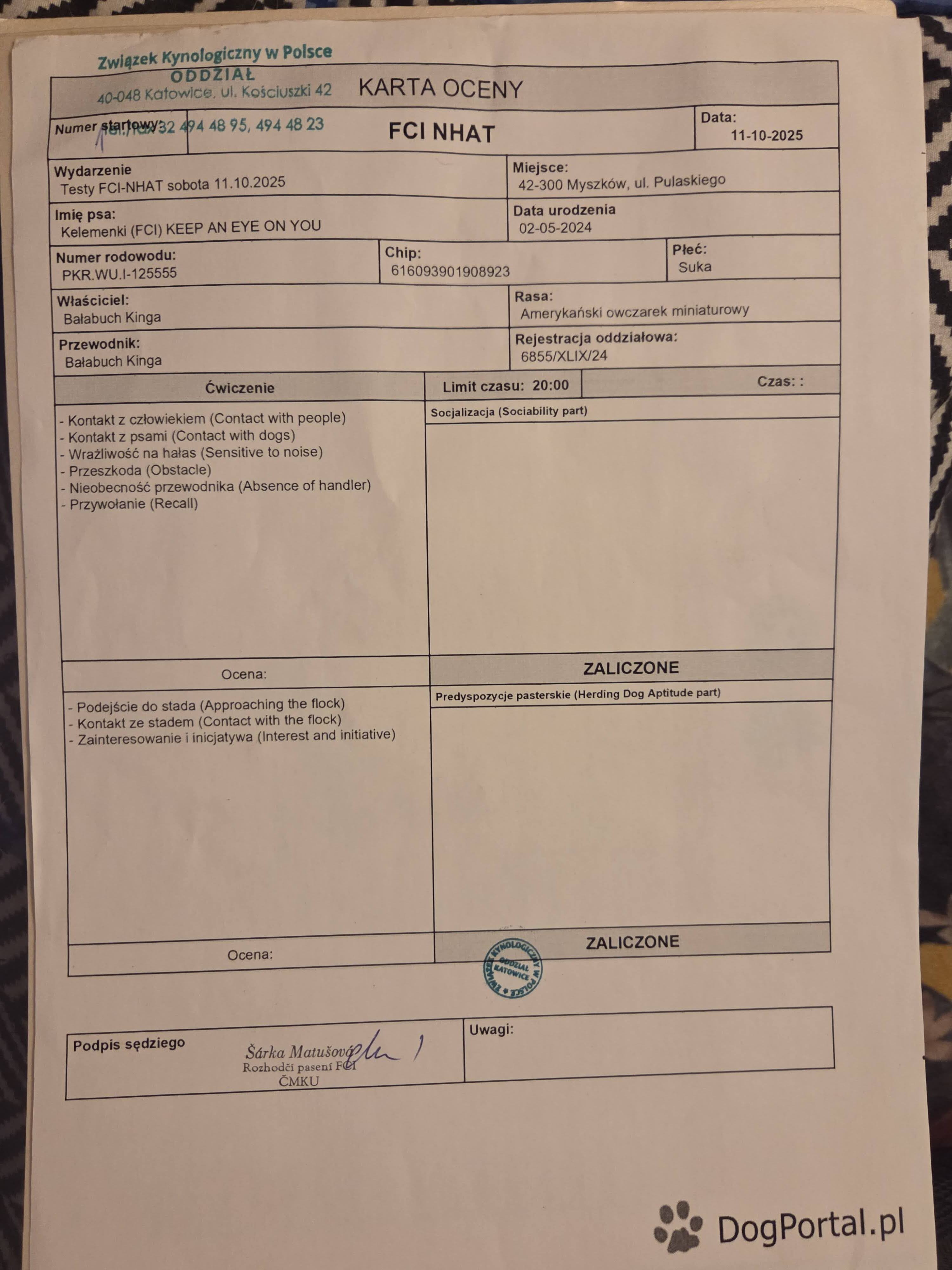 In October 2025, thanks to the efforts of the Herding Dog Working Section in ZKwP Katowice, I was able to participate in the NHAT exams.
